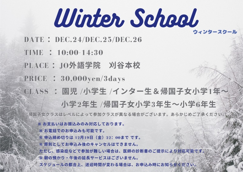 また、英語でお預かりをする保育所JOナーサリーと全て語学を共通点としたコースを開講し、