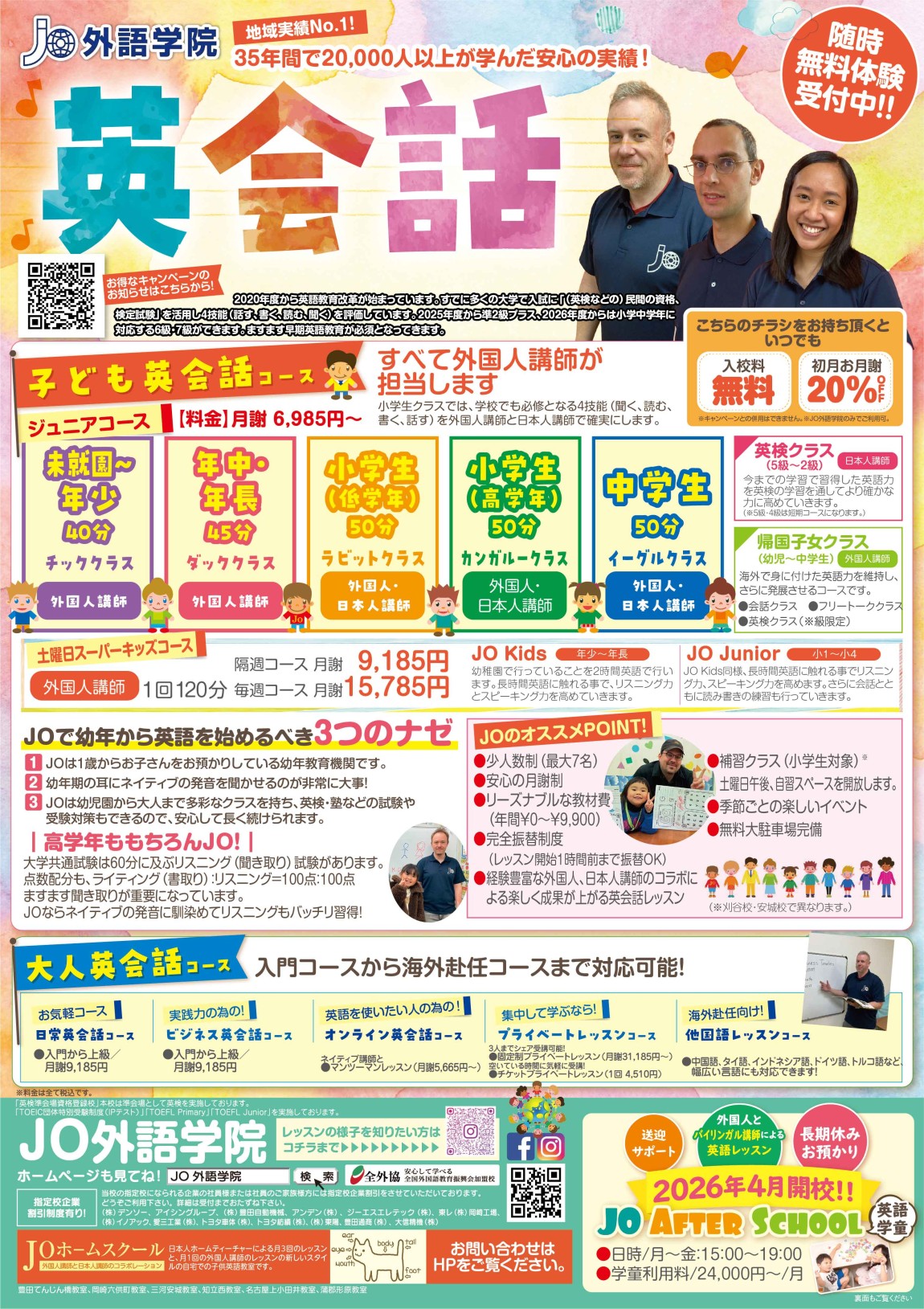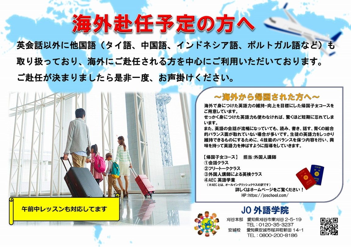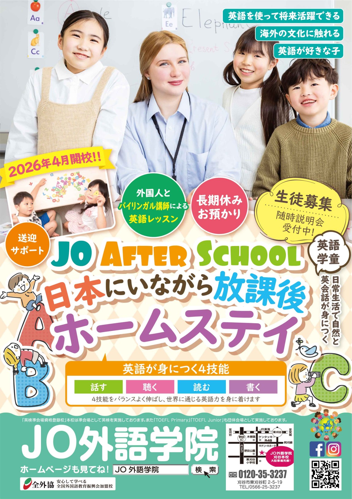 JO外語学院は平成元年に開校した愛知県刈谷市にある英会話学校です。