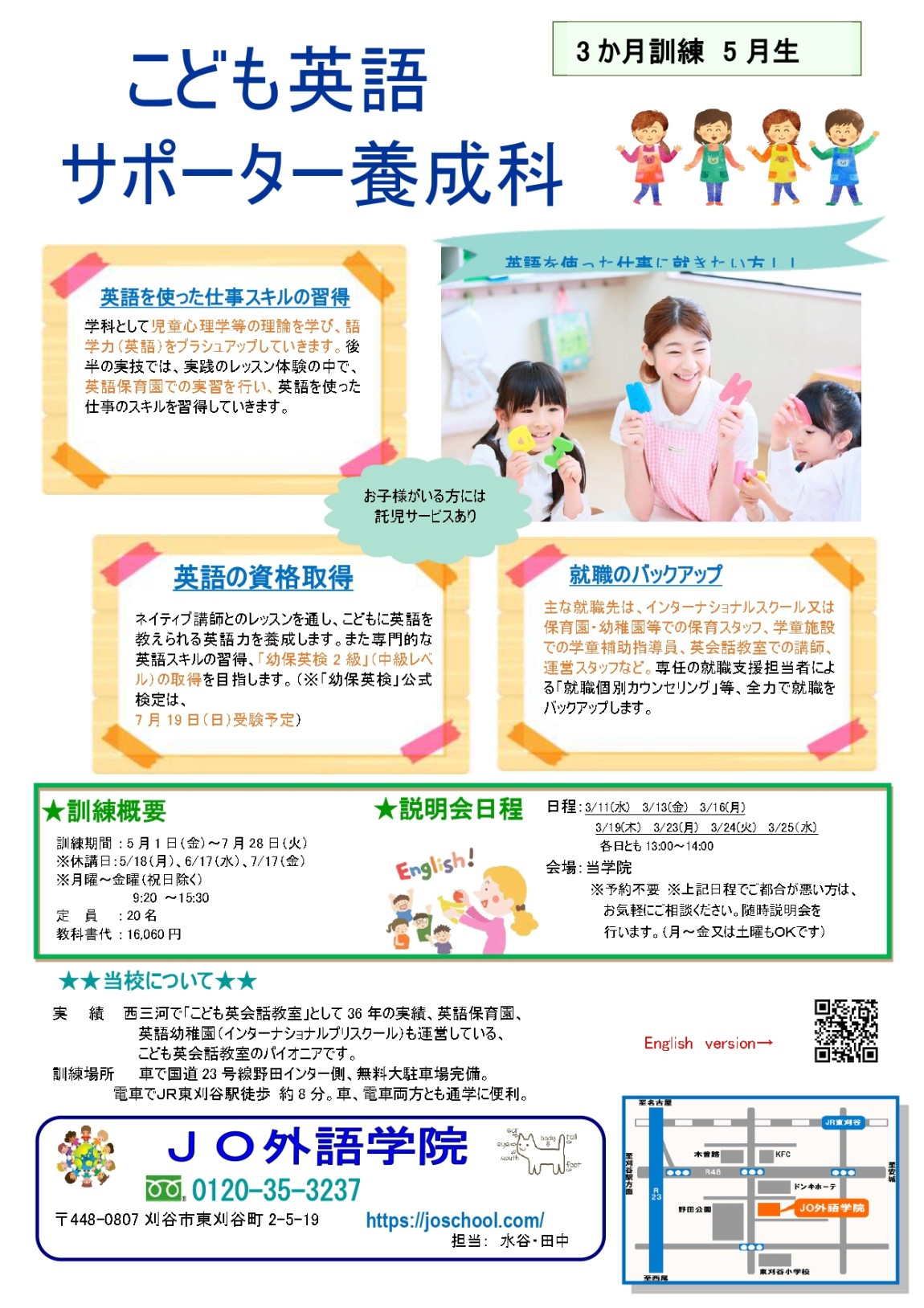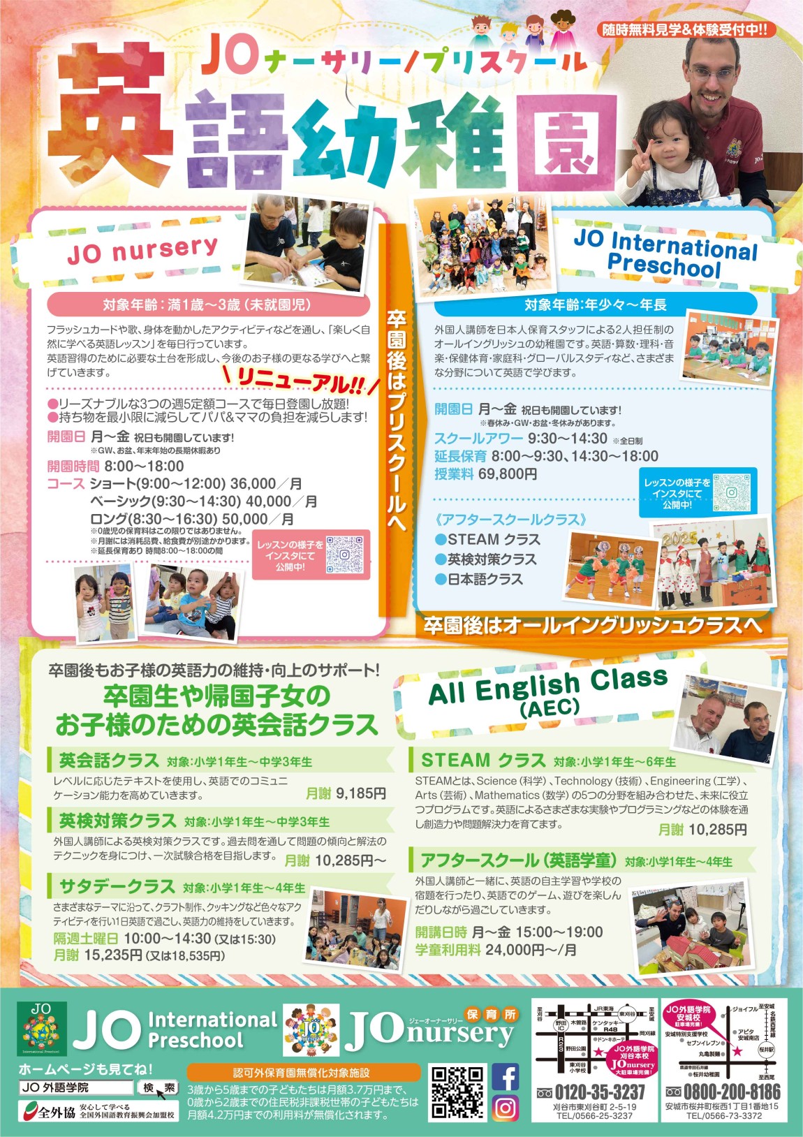 また、英語でお預かりをする保育所JOナーサリーと全て語学を共通点としたコースを開講し、